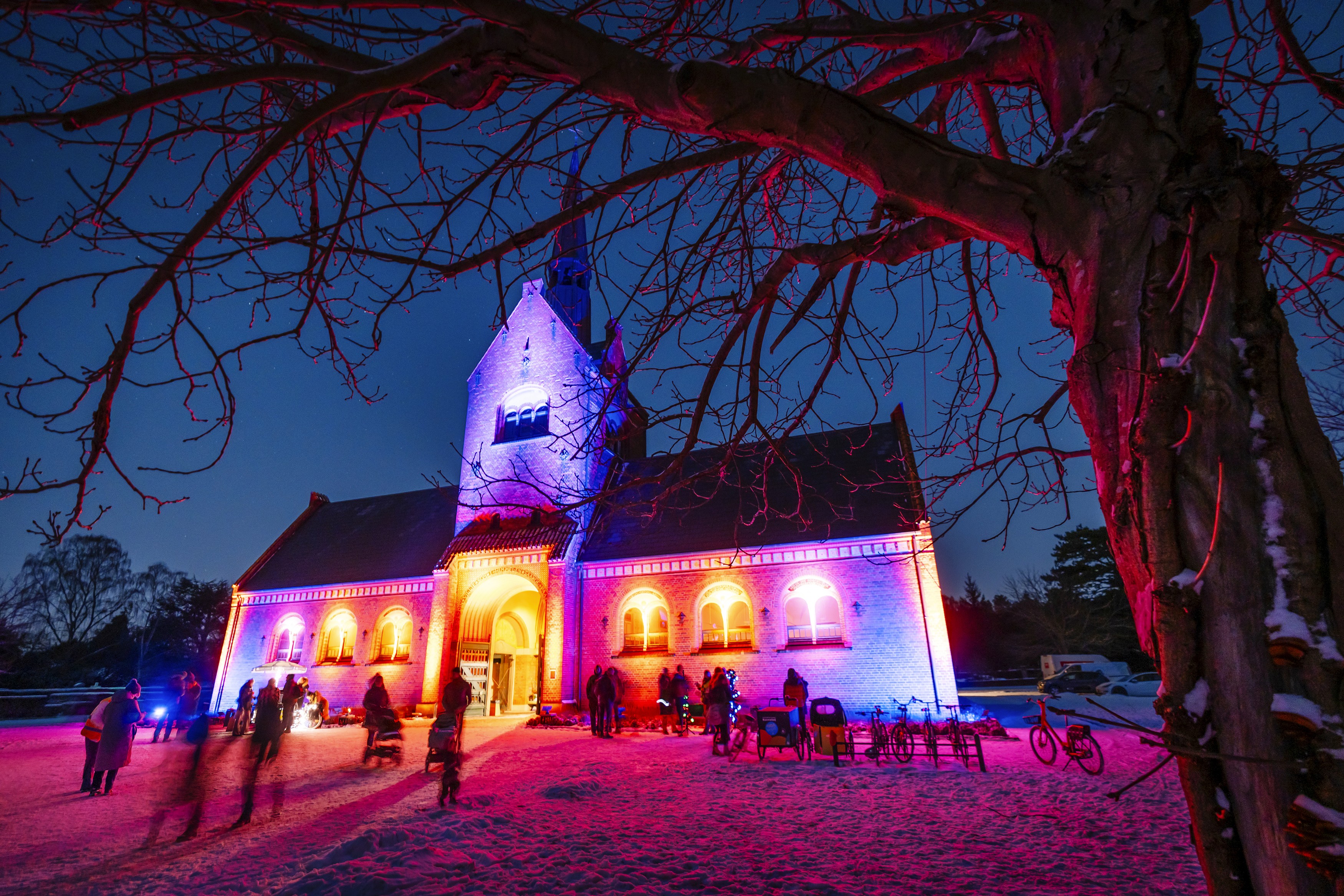 The lamps were sponsored by Signify and programmed by Vanpee. By a turn of events, the installation could not remain on Nordre Kapel and was relocated to the Louis Poulsen building, next to the water and near the centre of Copenhagen. The new location as a great fit and the original lighting program could be used.