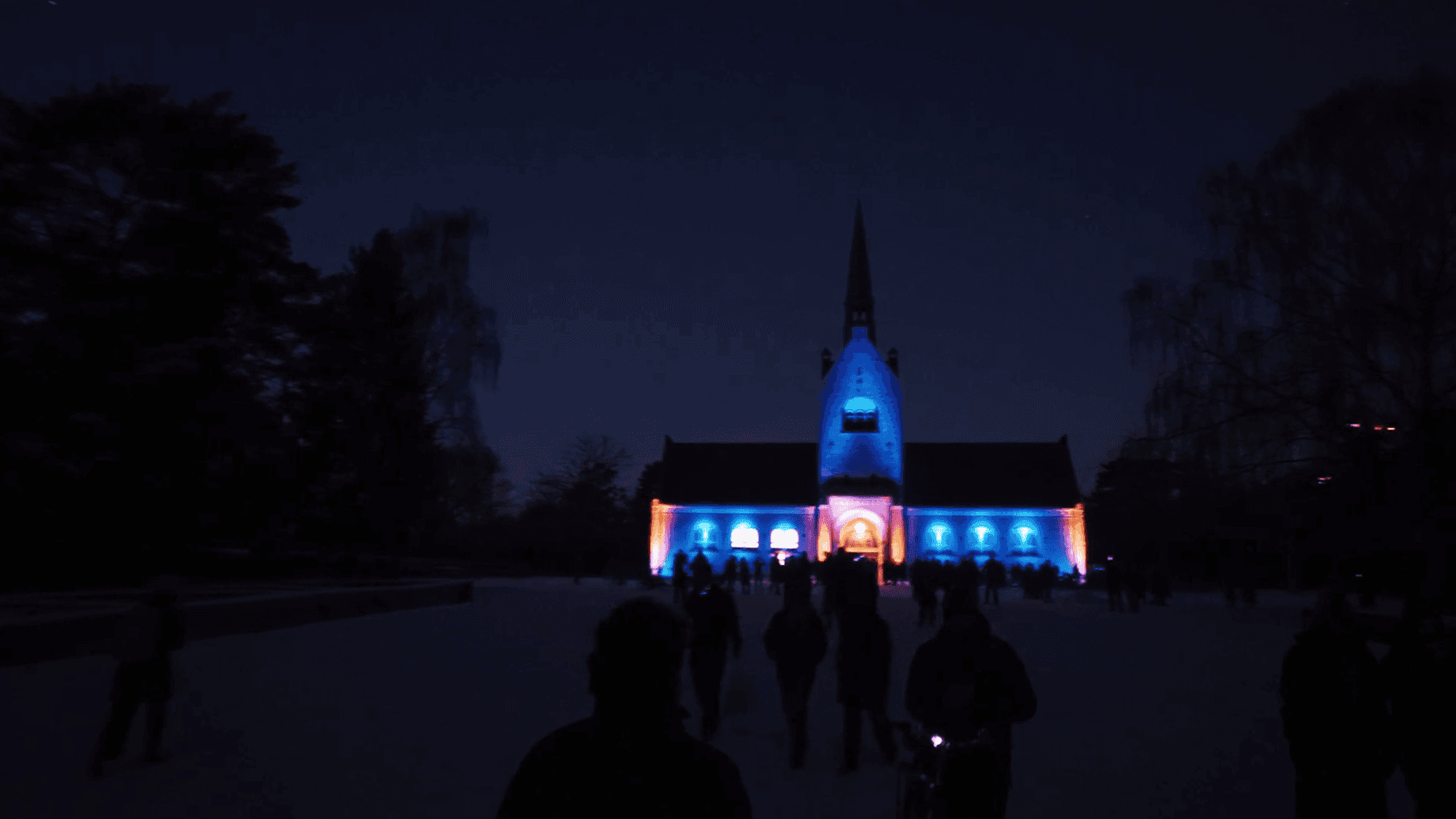 This dynamic installation was created to illuminate the beautiful façade of Nordre Kapel in Vestre Kirkekård for CLF 2024. Its artistic intention is to evoke “taking a breath” and to draw attention to change. Visitors can watch the entire façade “breathe” with light: inhale warmth and then exhale into a blue hue of calm. Because of the scale of the building, the “breath” lasted longer than a human breath. Moreover the orange blue relationship was used to illustrate bigger cycles of nature and our relationship to the natural light.